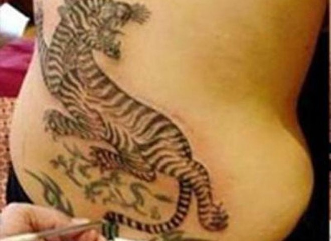 Эта звезда Голливуда сравнивает себя с тигрицей, поэтому спину красотка украсила татуировкой, изображающей тигра.