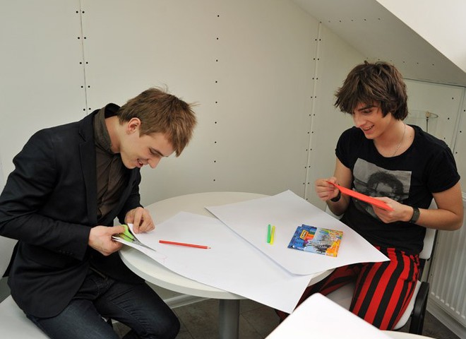 Владимир Дантес и Вадим Олейник запаслись цветной бумагой, картоном, фольгой и клеем, чтобы порадовать своих фанаток самодельным подарком. По правде сказать, ребятам такое «рукоделие» не очень близко, но, как говорится, талантливый человек талантлив во всем.