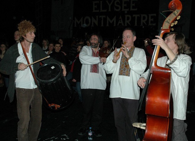 Кроме еды, артисты привезли с собой и украинские развлечения. Ребята играли национальную музыку, приглашая гостей вечера на танцы. После чего Олег Скрипка исполнил еще несколько колядок, переделанных им же в рок-стиле.