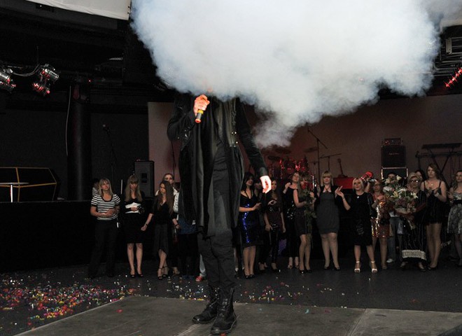 Этот артист облачился в совершенно новый образ. Его нынешний стиль абсолютно противоположен старому. Кардинально изменился даже цвет его одежды - с белого на черный. Но все же при постановке номеров, как и прежде, используется много декораций и большое количество дыма. Вот и попал певец в обильную струю белого густого дыма.