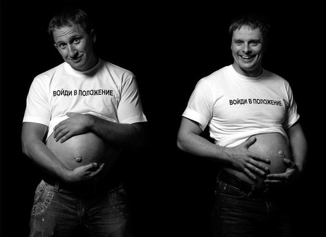Известные мужчины - телеведущие, певцы, актеры - согласились на пару часов попробовать себя в роли... беременных. На такой эксперимент знаменитости решились ради повышения рождаемости в стране. Ради этого селебрити-отцы поучаствовали в проекте "Войди в положение". На время данного оригинального фотосета ребятам выдали накладные силиконовые животы. Смотрелись они на них, надо сказать, весьма правдоподобно.