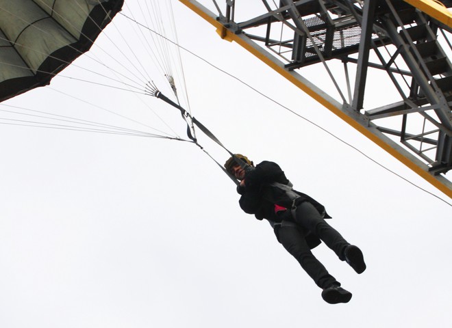 Конкурсанты национального отборочного тура конкурса "Новая волна" готовы на все ради победы: и гантели таскать, и армрестлингом заняться. Но самый героический поступок за неделю до финального концерта совершил дуэт EMOTION. Ребята не побоялись прыгнуть с парашютом на одной из киевских баз.