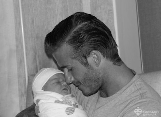 А потом Виктория Бэкхем подключилась к социальной сети и выложила снимок счастливого отца с малышкой на руках.