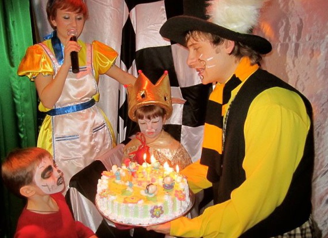 У детей была настоящая праздничная вечеринка вместе с клоунами, праздничным тортом и подарками.