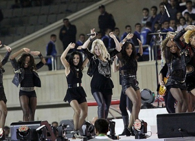 - Через несколько минут наш ребенок впервые побывает на сцене и, кстати, на футбольном мероприятии! - написала Шакира в Твиттере за несколько минут до свого выступления в Баку.