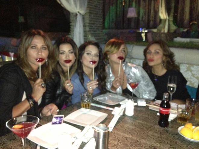 Под хорошую музыку пришли провести свой вечер сам Мурат с Ани Лорак, а также Лиля Подкопаева со своими друзьями. А как говорится: перед своими друзьями можно вести себя, как угодно. Вот девочки и позировали друг перед другом, то с усами, то с губами.