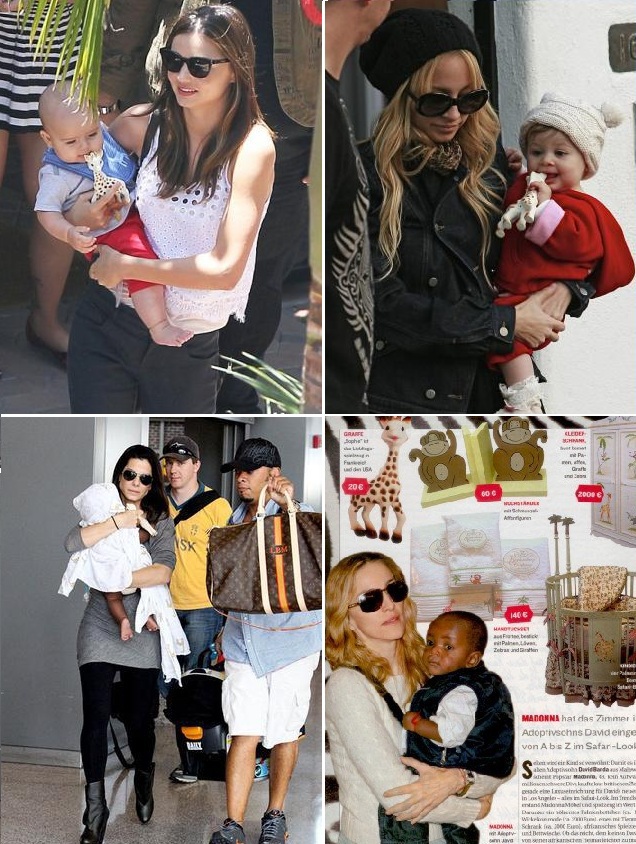Жирафа Софи – любимая игрушка сына поп-королевы Мадонны, а еще детей Сандры Баллок, Пинк, Николь Ричи, Миранды Керр! Фотографии детей этих и других знаменитостей с Жирафой Софи регулярно появляются на страницах глянцевых изданий Парижа, Нью-Йорка и других модных столиц.