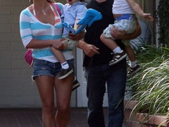 Брюнетка Бритни Спирс гуляет с детьми