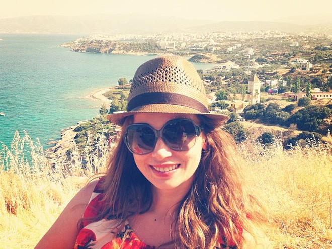 Артистка ест заморские деликатесы на отдыхе.