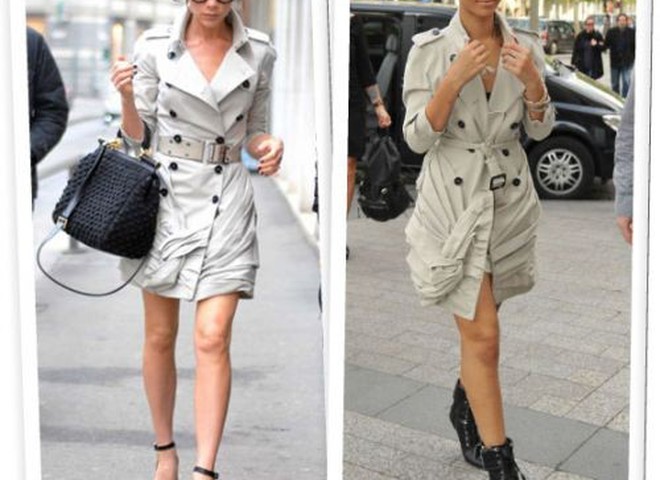 Вікторія Бекхем, 36-річна співачка перша наділа тренч Burberry Prorsum колекції Весна 2010. Світська левиця так прибралась для зустрічі зі своїм знаменитим чоловіком Девідом Бекхемом. Ріанна ж була помічена в ньому зовсім недавно в Парижі, коли відвідувала бутік Louis Vuitton і секс-шоп.