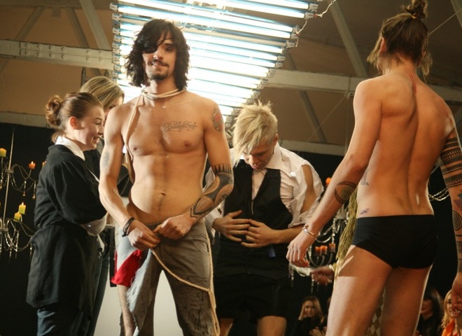 Зробивши подіумом кілька кроків, "Квести" зненацька різкими рухами почали розривати на собі куртки та брюки.
